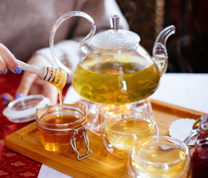– Μέλι: γλυκαίνει το ρόφημα και έχει μια ελαφριά πρεβιοτική δράση, προωθώντας την ευεξία της εντερικής χλωρίδας.