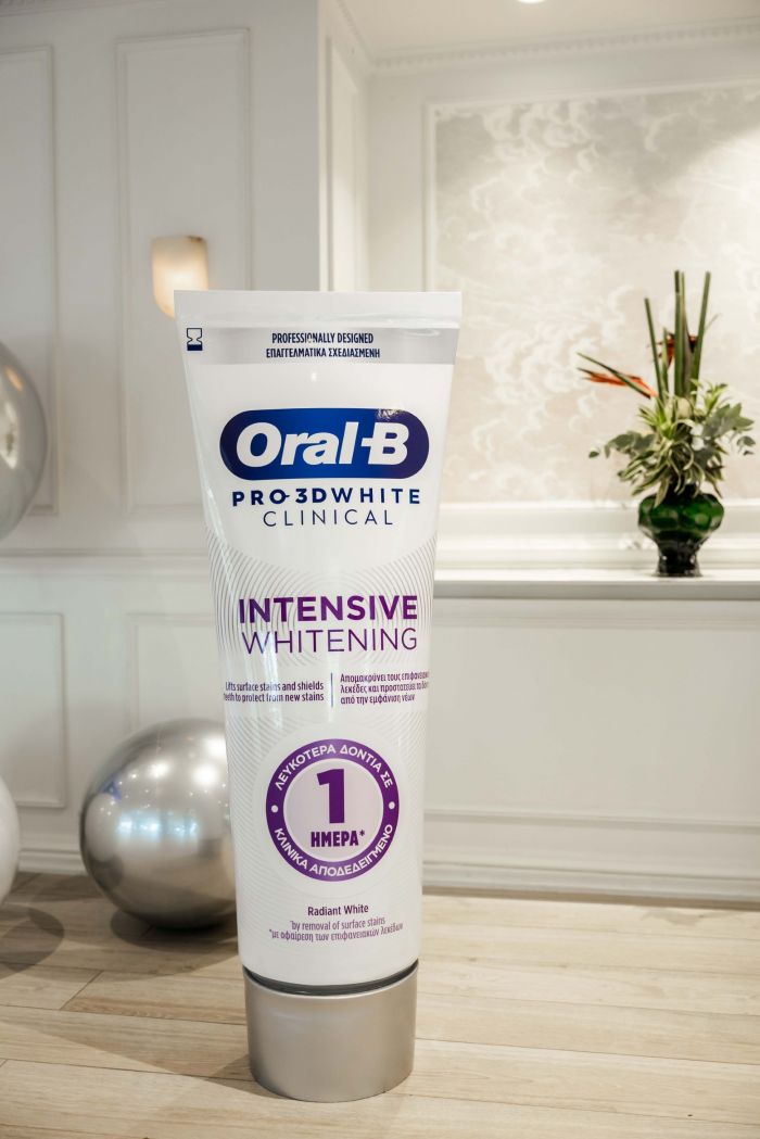 Η νέα Oral-B Pro-3D White Clinical Intensive Whitening κυκλοφορεί ήδη σε όλα τα καταστήματα λιανικής και σε επιλεγμένα φαρμακεία. Γιατί στο τέλος της ημέρας, το πιο όμορφο χαμόγελο είναι πάντα το δικό μας – και με την Oral-B, λάμπει από την πρώτη κιόλας μέρα.